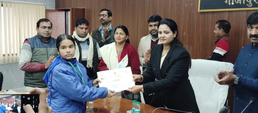 कार्यक्रम के दौरान विगत दिनों आयोजित जनपद स्तरीय काव्य पाठ, निबंध एवं भाषण प्रतियोगिता के विजेता विद्यार्थियों को प्रमाण पत्र एवं पुरस्कार राशि का चेक प्रदान किया गया। काव्य पाठ प्रतियोगिता में विजयलक्ष्मी प्रजापति, अंकिता सेन एवं रिंकी शुक्ल क्रमशः प्रथम, द्वितीय एवं तृतीय स्थान पर रही तथा इन्हें पुरस्कार राशि के रूप में रुपए दस हजार, पांच हजार एवं दो हजार पांच सौ का चेक दिया गया,जबकि भाषण प्रतियोगिता में प्रज्ञा वर्मा, अमृता राय एवं श्रेया मौर्य क्रमशः प्रथम, द्वितीय एवं तृतीय स्थान पर रहीं । इन्हें भी पुरस्कार स्वरूप रुपए दस हजार, पांच हजार एवं दो हजार पांच सौ का चेक दिया गया। निबंध लेखन प्रतियोगिता में प्राची कश्यप, दिव्या कुशवाहा एवं स्नेहा पांडे, प्रथम, द्वितीय एवं तृतीय स्थान पर रही तथा इन्हें पुरस्कार स्वरूप रुपए पांच हजार, तीन हजार एवं दो हजार का चेक मुख्य अतिथि श्रीमती सपना सिंह एवं उपस्थित अधिकारियों द्वारा प्रदान किया गया।