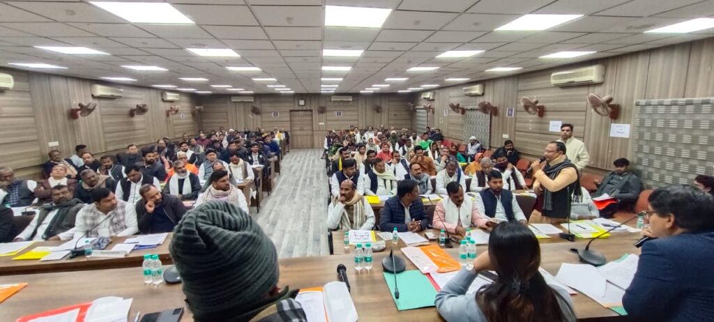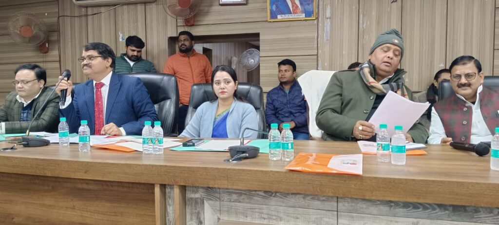 गाजीपुर। जिला पंचायत की सामान्य बैठक सपना सिंह, अध्यक्ष, जिला पंचायत की अध्यक्षता में शुक्रवार को हुई। अध्यक्ष की अनुमति से अपर मुख्य अधिकारी द्वारा कार्यवाही प्रारम्भ की गयी। उपस्थित सभी सदस्यगण द्वारा पुनरीक्षित बजट 2025-26 का आय रू0-117834654.00 एवं व्यय रू0-1152442019.00 एवं मूल बजट 2026-27 का आय रू0-811463135.00 एवं व्यय रू0-792998200.00 का बजट अनुमोदित किया गया। बैठक में अन्य विभाग के कार्यों की समीक्षा किया गया। जिसमें मुख्यतः शिक्षा, सड़क, बिजली, स्वास्थ्य से जुड़े समस्याओं को सदस्यगण द्वारा उठाया गया। जिसका समाधान/उत्तर सम्बन्धित विभाग के अधिकारियों द्वारा दिया गया। साथ ही विधायक ओमप्रकाश सिंह के प्रस्ताव पर गाजीपुर शहर को स्मार्ट सिटी योजना में लिये जाने का प्रस्ताव अनुमोदित किया गया। बैठक में सपना सिंह, ओमप्रकाश सिंह, जै किशन साहू, विधायक सदर, डॉ० वीरेन्द्र यादव, विधायक जंगीपुर, सदस्य, फेकू यादव, बसंत सिंह यादव, आकाश सिंह यादव, नरेन्द्र यादव, नरेन्द्र राव, शशि प्रकाश सिंह, अभय प्रकाश सिंह, शैलेन्द्र सिंह, रेखा भट्ट, महेश यादव, निशा यादव, अजय कुमार आदि सदस्यगण उपस्थित रहे। अन्त में अध्यक्ष द्वारा उपस्थित विधायकगण एवं सदस्यगण का आभार एवं धन्यवाद ज्ञापित करते हुए बैठक के समाप्ति की घोषणा की गयी।