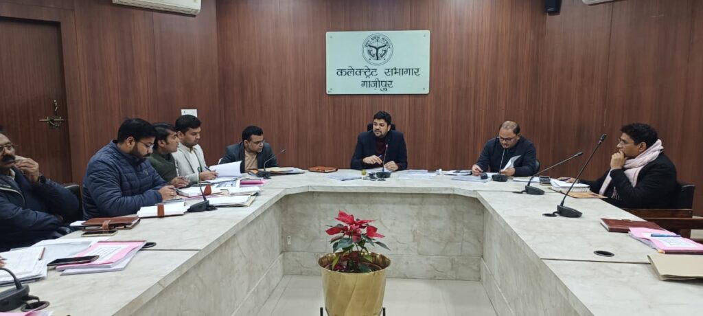 गाजीपुर ।जिलाधिकारी अविनाश कुमार की अध्यक्षता में त्रिस्तरीय पंचायत सामान्य निर्वाचन-2026 हेतु निर्वाचक नामावली के वृहद पुनरीक्षण की प्रगति की समीक्षा बैठक राइफल क्लब में अपर जिलाधिकारी (वि०/रा०) / निर्वाचक रजिस्ट्रीकरण अधिकारी, समस्त उप जिलाधिकारी, समस्त तहसीलदार, समस्त खण्ड विकास अधिकारी एवं समस्त सहायक विकास अधिकारी (पंचायत) उपस्थिति में हुई ।