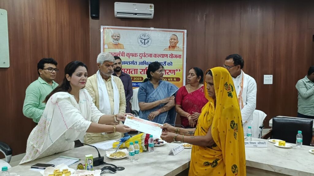 उनहोने बताया कि कृषक आश्रितों की सहायता हेतु मुख्यमंत्री कृषक दुर्घटना कल्याण योजना 14 सितम्बर 2019 से प्रभावी हुई जो वर्तमान में संचालित है। वर्तमान में शासनादेश के अनुसार तहसील स्तर पर किसान की मृत्यु के 90 दिनों के अन्दर तथा जिला स्तर पर 180 दिनो के अन्दर आवेदन पत्र प्रस्तुत किया जा सकता है। मृत्यु की दशा में शासन द्वारा मृतक के आश्रितों को रू05 लाख तथा पूर्ण शारीरिक अक्षमता/दिव्यांग होने की दशा में रू0 05 लाख तथा दोनो हाथ, दोनो पैर अथवा दोनों ऑख की क्षति होने पर रू0 05 लाख तथा एक हाथ के साथ एक पैर की क्षति होने पर रू0 05 लाख तथा एक हाथ अथवा एक पैर अथवा एक ऑख की क्षति पर रू0 2.5 लाख की सहायता राशि दी जाती है। स्थायी दिव्यांगता 50 से 100 प्रतिशत के बीच होने पर रू0 2.5 लाख एवं स्थायी दिव्यांगता 25 से 50 प्रतिशत होने पर रू0 1.25 लाख रूपये शासन द्वारा सहायता राशि दी जाती है। उन्होने उपस्थित किसानो/आश्रितों से अपील किया कि इस योजना के बारे में अपने आस पास गॉव, क्षेत्रों में जरूर बताये क्योंकि जिससे इस योजना का लाभ पात्र लाभार्थियों को भी मिल सके। अध्यक्ष नगर पालिका परिषद सरिता अग्रवाल एव जिलाध्यक्ष भाजपा ओम प्रकाश राय ने सरकार को इस योजना के संचालन के लिए बधाई दी। कार्यक्रम का संचालन सुभाष चन्द्र प्रसाद कार्यक्रम एवं लेखा सहायक नेहरू युवा केन्द्र, आभार उपजिलाधिकारी सदर मनोज पाठक ने व्यक्त किया।