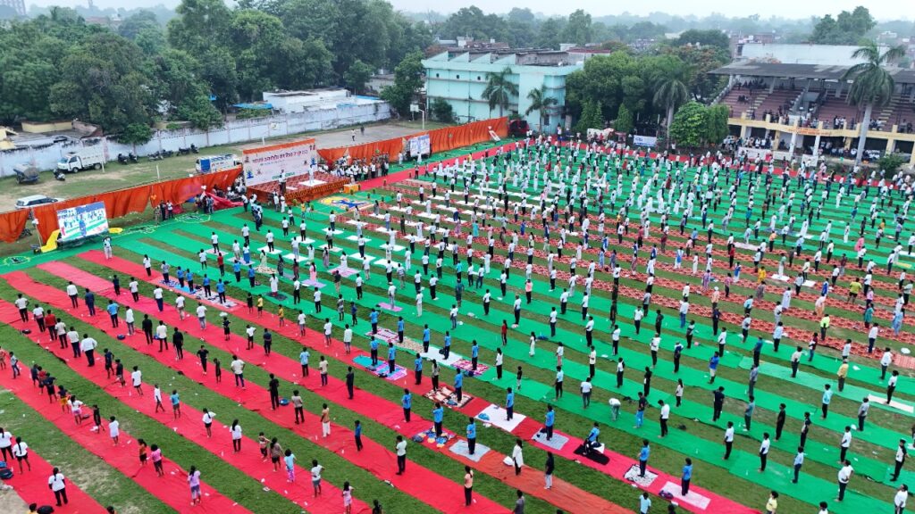 गाजीपुर । ग्यारहवां अन्तर्राष्ट्रीय विश्व योग दिवस थीम ‘‘एक पृथ्वी एक स्वास्थ्य के लिए योग‘‘ जनपद में मनाया गया । शनिवार को जनपद में उत्साह, उल्लास, एवं उमंग के साथ ग्यारहवां अंन्तर्राष्ट्रीय योग दिवस-2025 के कार्यक्रम आयोजित हुए। जिला मुख्यालय पर नेहरू स्टेडियम गोराबाजार में बड़ी तादात में लोग शामिल हुए। इसी के साथ तहसील, ब्लाक, समस्त ग्राम पंचायतों व विभिन्न सरकारी व निजी संस्थानों में भी योग दिवस का आयोजन हुआ।