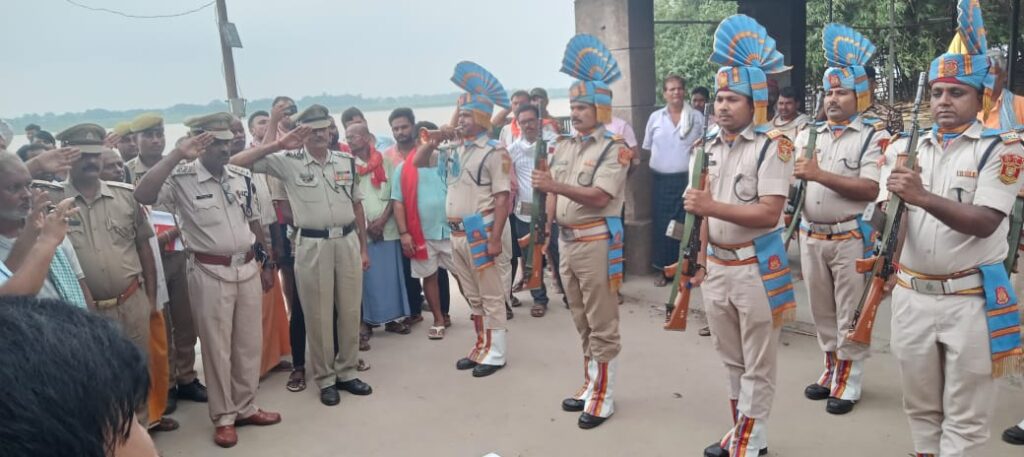 रेवतीपुर। स्थानीय गाँव के धज्जू राय पट्टी निवासी एवं सड़क हादसे में मृत बीएसएफ के हेड कांस्टेबल राधाकृष्ण राय( उम्र 48 वर्ष) का तिरंगे में लिपटा पार्थिव शरीर शनिवार को उनके पैतृक गांव पहुंचा।शव पहुंचते ही कोहराम मच गया।पत्नी ममता राय और माता लीलावती देवी सहित अन्य परिजनों का रो- रोकर बुरा हाल हो गया।बीएसएफ के सब इंस्पेक्टर,थानाध्यक्ष रमेश कुमार पटेल सहित अन्य अधिकारियों एवं पुलिस कर्मियों ने जवान को सशस्त्र सलामी दी।इनके अलावा अन्य गणमान्य लोगों ने भी पार्थिव शरीर पर पुष्प अर्पित कर श्रद्धांजलि दी।
