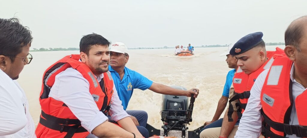 गाजीपुर । जनपद में गंगा नदी के बढ़ते जल स्तर एंव बाढ़ के दृष्टिगत जिलाधिकारी अविनाश कुमार एवं पुलिस अधीक्षक डा0 ईरज राजा ने तहसील सेवराई के विभिन्न बाढ़ प्रभावित ग्रामों का निरीक्षण कर लोगों से उनका हाल जाना।