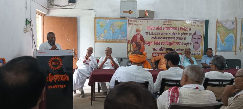 गाजीपुर। जिले के शहीद गांव शेरपुर कलां निवासी जमुना गिरि की याद में मंगलवार को डीएवी इंटर कॉलेज में मंगलवार को श्रद्धांजलि कार्यक्रम आयोजित कर उन्हें श्रद्धांजलि दी गई। आयोजन कमेटी के सदस्य चौधरी दिनेश चंद्र राय ने कहा कि महात्मा गांधी के “करो या मरो” के आह्वान पर शेरपुर कलां निवासी जमुना गिरी पुत्र स्व. सुदेश्वर गिरी ने 12 अगस्त 1942 को डीएवी इंटर कॉलेज से सहयोगी छात्रों संग आंदोलन की लौ जलाई थी। जब महात्मा गांधी की गिरफ्तारी हुई तो शहर के डीएवी एवं विक्टोरिया स्कूल (राजकीय सिटी इण्टर कालेज गाजीपुर) में पढ़ने वाले जमुना गिरी ने हड़ताल करा दिया और वे गिरफ्तार कर लिये गये। शाम को छूटने के बाद अगले दिन गाजीपुर घाट, निर्माणाधीन गौसपुर हवाई अड्डे को जला दिया, जिसमें उनको पांच वर्ष का कठोर कारावास हुआ। यमुना गिरी को हुई सजा के विरोध में शेरपुर कलां निवासी अन्य नौजवानों ने 18 अगस्त 1942 को तहसील मुख्यालय पर पहुंच कर तिरंगा लहराते हुए आजादी की घोषणा की। उसके बाद अंग्रेज सैनिकों ने तहसील मुख्यालय पहुंच कर गोलीबारी शुरू कर दी। जिसमें शिवपूजन राय के नेतृत्व में आए आठ नौजवान शहीद हो गए। शहीद गांव शेरपुर के निवासी उन्हें शिद्दत से याद करते हैं। आयोजन समिति के सदस्य राजेश राय बागी ने श्रद्धांजलि अर्पित करते हुए कहा कि मुहम्मदाबाद तहसील के शेरपुर कलां निवासी अनेक नौजवानों ने अंग्रेजी हुकूमत के सामने लोहा लेने का काम किया था। जिन्हें अंग्रेजों ने जेल की सलाखों के पीछे भेजकर तमाम यातनाएं दी थी। 1942 में अहिंसा क्रांति की यह अनूठी एवं ऐतिहासिक घटना आज भी स्वतंत्रता आंदोलन के इतिहास में स्वर्ण अक्षरों में दर्ज है। इसके बाद अंग्रेजों ने शेरपुर में कई दिन तक दंडात्मक कार्रवाई की और गांव को लूटा था। इस मौके पर बृजेन्द्र राय, जयप्रकाश राय, शशिधर राय, विजय कुमार राय, अमित कुमार राय, शैलेन्द्र यादव, विद्यासागर गिरि, डॉ रमेश राय, मिथिलेश राय, संतोष जायसवाल, हेमनाथ राय, दिनेश शर्मा, डॉ संतोष तिवारी, दीनबंधु उपाध्याय, आनंद राय, रामजी गिरी, प्रमोद राय, ओमप्रकाश गिरी, मनोज राय, उमेश कुमार राय, सूर्यप्रकाश राय, डीएवी के प्रधानाचार्य हरिशंकर आदि मौजूद रहे। अध्यक्षता राजन जायसवाल और संचालन चौधरी दिनेश चन्द्र राय ने किया।