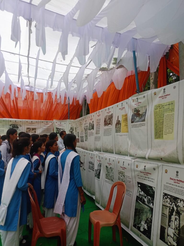 गाजीपुर । 14 अगस्त 1947 को विभाजन विभीषिका स्मृति दिवस के अवसर पर जिला सूचना कार्यायल द्वारा प्रदर्शनी का आयोजन आडिटोरियम परिसर में किया गया। मुख्य विकास अधिकारी संतोष कुमार वैश्य, जिला विकास अधिकारी सुबाष चन्द्र सरोज सहित अन्य जनपद स्तरीय अधिकारियों, स्कूली छात्र/छात्राओं एवं आम नागरिकों ने आडिटोरियम परिसर में पहुंचकर विभाजन विभीषिका स्मृति दिवस पर लगायी गयी प्रदर्शनी का अवलोकन किया ।