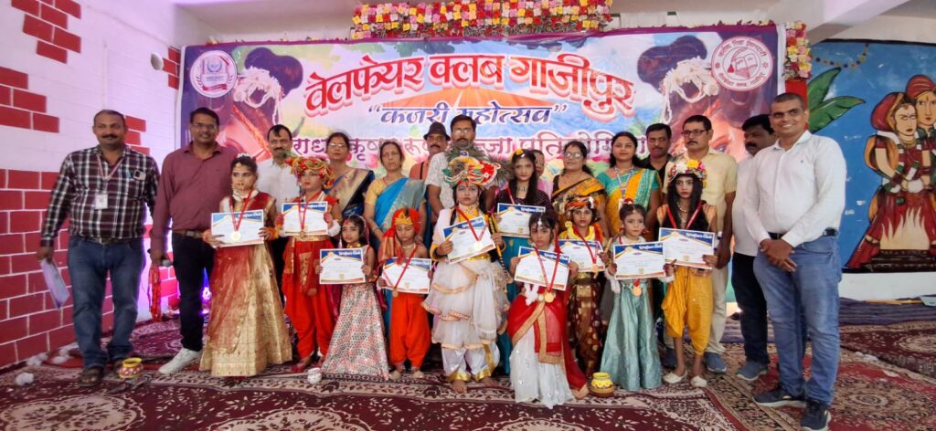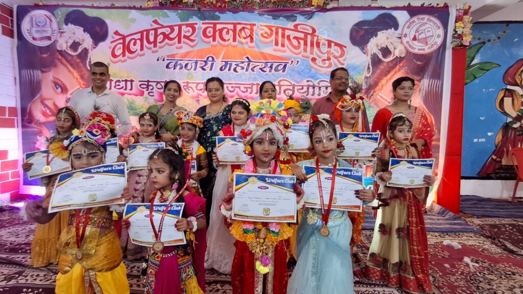 गाजीपुर।वेलफेयर क्लब के तत्वावधान में कजरी महोत्सव के अंतर्गत जनपद स्तरीय राधा–कृष्ण रूप सज्जा प्रतियोगिता का भव्य आयोजन रामदूत इंटरनेशनल स्कूल के सौजन्य से लहुरी काशी पैलेस, जल निगम रोड, रौजा में सम्पन्न हुआ। कार्यक्रम में जनपद के विभिन्न विद्यालयों से आए प्रतियोगियों ने उत्साहपूर्वक प्रतिभाग किया।