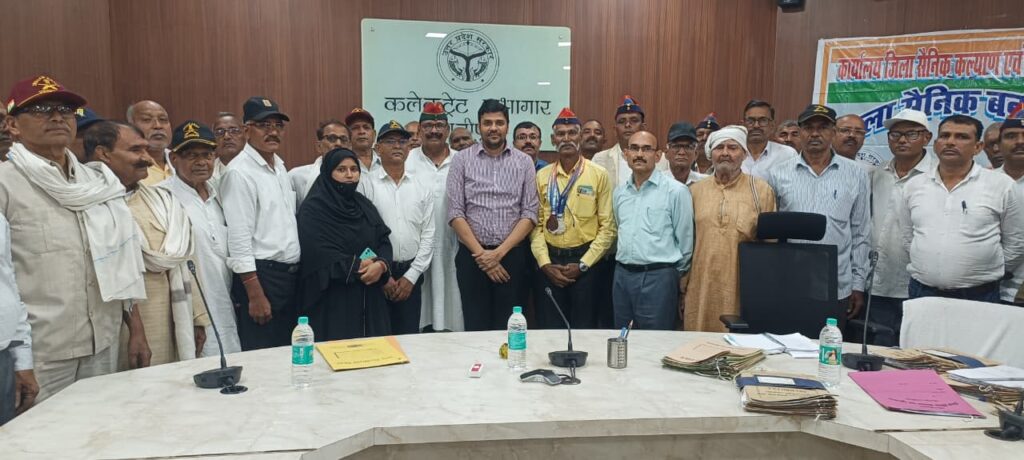 गाजीपुर ।जिलाधिकारी अविनाश कुमार की अध्यक्षता में बैठक का आयोजन कलेक्ट्रेट सभागार में किया गया। बैठक में जनपद के 106 से अधिक पूर्व सैनिक उपस्थित थे। बैठक का संचालन जिला सैनिक कल्याण एवं पुनर्वास अधिकारी विंग कमांडर मो० निशात अफजल (अ०प्रा०) के द्वारा किया गया। बैठक में जिलाधिकारी ने पूर्व सैनिकों की समस्याओं के सम्बन्ध में 08 प्रार्थना पत्रों का अवलोकन किया । प्रार्थना पत्र के साथ शिकायत के बारे में स्वयं पूर्व सैनिकों से उनकी समस्याओं के बारे में जानकारी ली और उनके निस्तारण हेतु संबंधित विभागों को पत्र जारी करने का निर्देश दिया। जिलाधिकारी के द्वारा यह भी निर्देश दिया गया कि किसी भी स्थिति में जिला सैनिक बन्धु बैठक में आयी शिकायतों का 15 दिन में सम्बंधित विभाग से निस्तारण की रिपोर्ट प्राप्त होनी चाहिए और आवेदनकर्ता को भी उसकी प्रति उपलब्ध करायी जाय। जिलाधिकारी ने प्राप्त पुराने प्रकरणों के सम्बन्ध में जानकारी लेते हुए लम्बित प्रकरणों का त्वरित निस्तारण कराये जाने का निर्देश दिया। बैठक का समापन अन्त में जिला सैनिक कल्याण एवं पुनर्वास अधिकारी के द्वारा सभी उपस्थित पूर्व सैनिकों एवं अधिकारीगण का आभार के साथ किया गया।