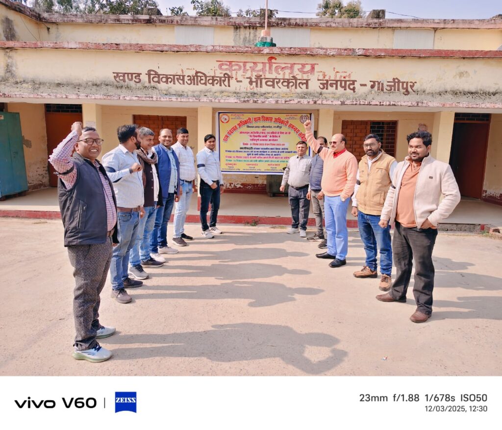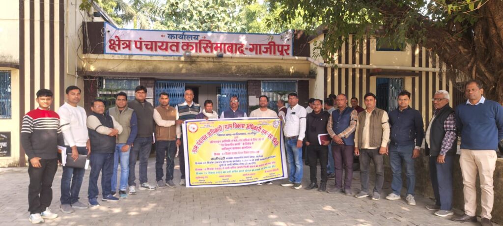 गाजीपुर। प्रांतीय नेतृत्व के आह्वान पर जनपद के सोलह विकास खंडों में ऑनलाइन उपस्थिति के विरोध में तीसरे दिन भी समस्त सचिवों ने काली पट्टी बांधकर शासकीय कार्य किया। ग्राम पंचायत ,ग्राम विकास अधिकारी समन्वय समिति के जिलाध्यक्ष सूर्यभानु राय ने कहा कि सभी सभी सचिव काली पट्टी बांध कर कार्य कर रहे हैं हमारी सरकार से यही मांग है कि ऑनलाइन उपस्थिति के अव्यावहारिक आदेश को तत्काल वापस लिया जाए। कार्यकारी अध्यक्ष बैजनाथ तिवारी ने कहा कि बिना संसाधन उपलब्ध कराए हुए पंचायत सचिवों की ऑनलाइन उपस्थिति दर्ज करने के लिए आदेश किया गया है जो पूर्णतः अव्यावहारिक है और कत्तई स्वीकार नहीं है। इसके विरोध में जनपद के समस्त विकास खंडों पर एकत्र होकर समस्त सचिवों ने काली पट्टी बांधकर ऑनलाइन उपस्थिति ,दूसरे विभागों के कार्य कराने पर अपना विरोध दर्ज कराया एवं कहा कि उच्च अधिकारियों द्वारा सचिवों में भय का वातावरण पैदा कर जबरदस्ती अन्य विभागों के कार्य लिए जा रहे हैं जिससे पंचायत और विकास विभाग का कार्य प्रभावित हो रहा है।सचिव संगठन अब किसी प्रकार का उत्पीड़न कत्तई बर्दाश्त नहीं करेगा। यदि शांतिपूर्ण सत्याग्रह/आंदोलन के बाद भी यह आदेश वापस नहीं किया जाता है तो कार्य बहिष्कार हेतु बाध्य होंगे जिसकी संपूर्ण जिम्मेदारी शासन/ प्रशासन की होगी।